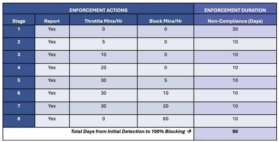 As shown in the table above, Once the Enforcement system in place and If the Exchange server is not remediated in 30 days (Stage 1), Exchange Online will begin to throttle messages from it which will cause the sending server to queue and retry the message later, resulting in delayed delivery of messages. The Throttling duration will be increased in stages if no remediation action is taken through Stage 2 to 4. If the Exchange servers are not remediated even during the Throttling-phase, then Exchange Online will start to block the emails in stages 4 to 8 and will eventually block all emails from unsupported Exchange versions. When the block is implemented, the system issues a permanent SMTP 550 error, which triggers a non-delivery report (NDR) to the sender.